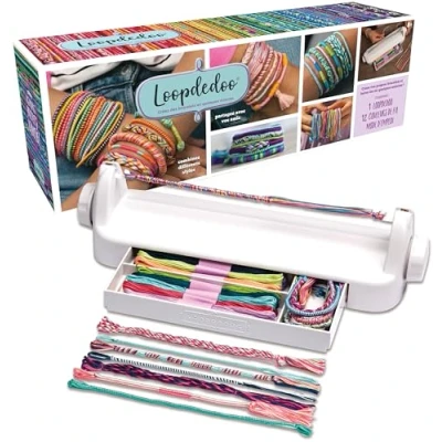 EASILY CREATE UNIQUE FRIENDSHIP BRACELETS: The Loopdedoo bracelet making kit is designed to allow children aged 8 and above to independently make personalized friendship bracelets, quickly and without help. Its patented rotary loom turns creation into a breeze. In a few minutes, you get an original, handmade and colorful bracelet. A COMPLETE AND READY TO USE DIY SET: This bracelet making kit includes everything you need to get started right away: 1 Loopdedoo loom with a built-in drawer for storage, and 12 coloured 100% cotton threads. No extra @@@Un8HBMLJ8XIkR6v16SF1bh41ByusjQ3r@@@, no batteries required: just open, pick your favorite wires and start the activity. EASY TO USE, EVEN FOR BEGINNERS: The Loopdedoo bracelet making kit has been designed to be accessible from the first use, even for kids who have never done any craft projects. Simply place the wires, turn the wheel, and the bracelet will take shape by itself. Thanks to this intuitive rotating system, children learn by playing and develop fine motor skills and concentration Infinite creations to express your style: thanks to the many combination possibilities, the Loopdedoo bracelet creation kit allows you to create an infinity of bracelet models: spirals, stripes, chevrons, double twists, etc. By changing the number of threads and colors, each creation is fully customizable. A creative and original gift idea for ages 8: This DIY set for children is perfect as a gift idea for a birthday, Christmas, holidays or a workshop with friends. Lightweight, compact and easy to carry, it can be used anywhere: at home, on a trip, or in group activity. This bracelet making kit develops children's autonomy and creative spirit INSTRUCTIONS FOR EASY USE: The French version of the Loopdedoo includes a clear and illustrated instruction manual in French, perfect for following step-by-step steps. A multilingual version is also available, translated into 12 languages, to suit children in different countries or educational settings. A kit designed to be simple, accessible and universal, for all creative little hands., Manufacturer: Goliath