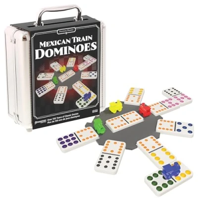 A CLASSIC DOMINOES GAME: Discover Mexican Train Dominoes, a must-have variant of the domino game, where strategy and anticipation are key! Be the first to put all your bricks off or score the fewest points to win the game. A fun, dynamic board game for the whole family. 91 DOMINOES WITH CLEAR COLORS FOR BETTER READABILITY: This set contains 91 double domino tiles with up to 12 colored dots for quick identification of values and better readability. The large format makes the dominoes easy to hold, ideal for children and adults. MORE GAMES IN ONE PACKAGE: Mexican Train Dominoes comes in a beautiful, sturdy case that can be taken anywhere. Furthermore, this game offers not only the opportunity to play Mexican Train, but also classic dominoes, domino matador and flea circus. PRESSMAN PREMIUM CLASSICS: Pressman, part of Goliath, celebrates its 100th anniversary and brings out a range of high-quality classic board games for the occasion, including Mexican Train Dominoes. With this product with high-quality stones and practical travel case, players can enjoy the different game classics for many evenings. STRATEGY GAME FOR CHILDREN FROM 6 YEARS OLD: The player who has the die with the highest number places it in the starting block. Then the game can begin! Play your dominoes on your own track or train or on the trains of other players to clear your tiles as quickly as possible. A strategic board game for children aged 6 and up and 2 to 10 players where every move counts., Manufacturer: Goliath