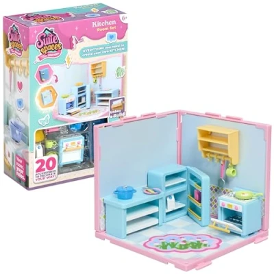 YOUR ROOM, YOUR RULES: Each Suite Spaces room is fully customizable, with different themed furniture and decorations included in each set. Let your creativity shine and design your own space! DIY YOUR SPACE: Transform your space with buildable pieces and magic reveals to make it all your own. COMPATIBLE SETS: Suite Spaces rooms are compatible with your favorite 3-4" small dolls. MODULAR SYSTEM: Unleash your creativity with this fully modular system, connect multiple rooms together and mix-and-match accessories to make a full dollhouse! KITCHEN FURNITURE: The Kitchen Set includes 20 pieces for your kitchen, including walls, a fridge and oven with working doors, wallpaper options, fabric rug, and more!, Manufacturer: Goliath