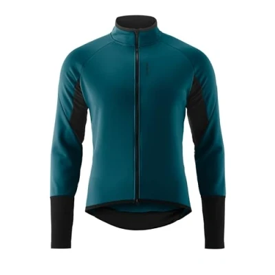 Warm and protective softshell cycling jacket with a close-fitting body mapping design for optimised aerodynamics Water-repellent and completely windproof, G-Shell material for perfect temperature regulation and high thermal insulation capacity Elasticated hem and cuffs, Back pocket with 3 compartments, and fabric inserts on the back and underarm for comfortable touring at colder times of year Ideally suited for a range of cycling adventures, Area of usage: touring, Mountain biking and racing Contents: 1 x Gonso Road Jacket Softshell 2 M, Water-repellent Men's Softshell Jacket, PFC-free, Fit: Slim Fit, Colour: Blue, Size: XL