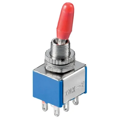 Toggle switch with 6 pins (solder nuts) switch can stand on 3 positions Lever of the switch consists of metal with a red plastic cap switch has a maximum load capacity of 6/125 A / V or 3/250 A / V ideal for DIY projects or, for example, model making