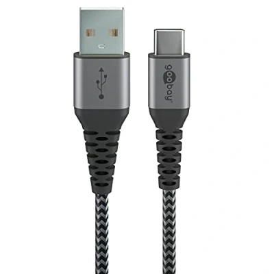 goobay 49297 Fast Charging Cable USB C to A 60 W 20 V/Extremely Robust Textile / 480 Mbits C/Fast Samsung 2 m/Fabric Grey m