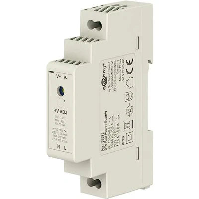 goobay 59573 DIN rail power supply 12V transformer ideal for operating monitoring and access systems/bell / door intercom/doorbell system/DIN 1.25A 15W