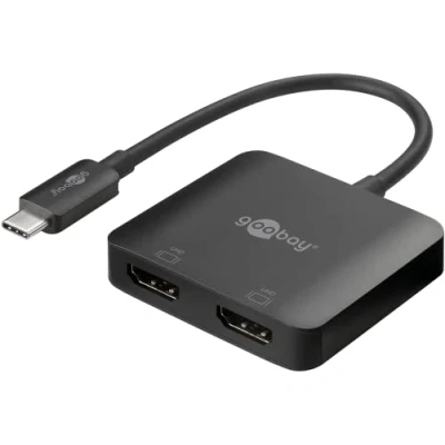 goobay 60173 USB C to HDMI Adapter / 4K @ 60Hz Splitter Laptop 2 Monitors 2Port Hub 32.4 Gbits/HDMI Docking Station/Black