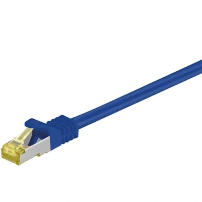 Goobay 92681 RJ45 Patch Cable with CAT 7 Raw Cable, Double Shielded, S FTP up to 600 Mhz, Halogen Free, Copper Plug, Gold Plated Contacts, 20 m, Blue