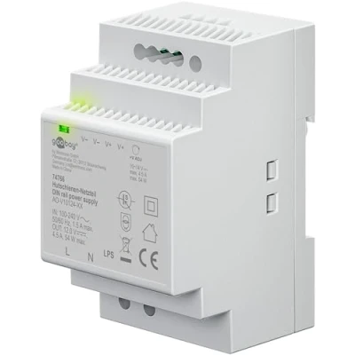goobay DIN rail power supply Compact 12V for bell transformers, monitoring and access systems, door openers Easy mounting on rail, 12 V, surge protection, 74766