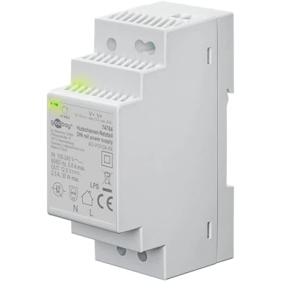 goobay DIN rail power supply Compact 12V for bell transformers, monitoring and access systems, door openers Easy mounting on rail, 12V, overvoltage protection, 74764