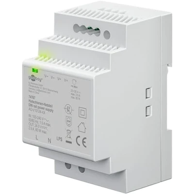 goobay DIN rail power supply Compact 24V for bell transformers, monitoring and access systems, door openers Easy mounting on rail, 24V, overvoltage protection, 74767