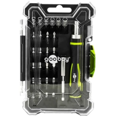 goobay Screwdriver Set with 26 Pieces Precision Bit Set, Ratchet Magnetic Holder, S2 Steel Bits, Socket Storage Box, Mechanic Tool 77840