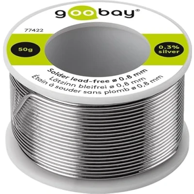 goobay Solder with Flux Diameter 0.8 mm, 50 g, Lead Free for Soldering on Electrical Components, 0.3% Silver, 7% Copper, 99% Tin, Content 2.5%, Melting Point 217C, 77422