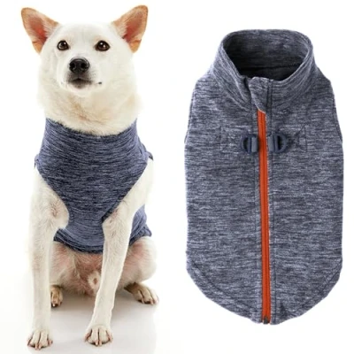 Zip Up Fleece Wash vs. Zip Up Fleece Vest- Our Zip Up Fleece Wash comes with washed-out colors and two additional sizes. Regular Zip Up Fleece only goes up to XL which fits dogs up to 35 lbs. The Zip Up Fleece Wash goes up to 3XL which will fit dogs up to 50 lbs. However, Zip Up Fleece Wash in size 2XL and 3XL does not have leash attachment D-rings on the back for safety reasons. Designed to Step-In, Zip Up and Go - Imagine this - Outside it’s snowing and freezing and your dog HAS to go. Our Dog Fleece Vest is a zipper closure dog sweater that you can quickly and easily put on your dog and head outside - no spending minutes struggling to put it on.Easy on, easy off, means when there’s an emergency, this hassle-free small dog fleece zips on and off with ease. Bottom Opening Design - This isn’t your typical zip on dog sweater or small dog jacket. Choose from over 8 different colors to make sure your small dog is the warmest and coolest fleece dog sweater on the block. It’s designed with armholes big enough for your dog to comfortably walk and go to the bathroom. Plus, it features an D ring on the back to use for short winter walks. (not recommended if your dog pulls.) Machine Washable - Our dog winter clothes are perfect for winter cold weather. The cold weather means your dog’s winter clothes are exposed to salt, snow, and all that gross sidewalk slush. That’s why we made the dog fleece vest machine-washable to remove any dirt easily. No hand-washing or worrying about the dog fleece zip up jacket setting ruined after one walk. Throw it in the washer and dryer, and it’s good to go for your next winter adventure. Accurate Sizing to Fit Your Small Dog - We make finding a winter fleece vest that accurately fits your small dog easier than any other winter dog coats with back zipper dog jackets for small dogs. Simply measure your dog's chest size with a tape measure and choose from one of our five easy-fit sizes that suit your dog. We also recommend choosing a neck opening that is bigger than the size of your dog’s head for accurate fitting.