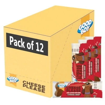 Good Boy Cheese Please With Beef Splinter Resistant Hard Dog Treats Low Fat and High in Protein Bulk Box x 12 Chews
