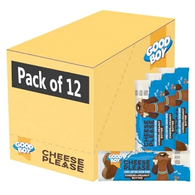 Good Boy Cheese Please With Peanut Butter Splinter Resistant Hard Dog Treats Low Fat and High in Protein Bulk Box x 12 Chews