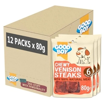 Good Boy Chewy Venison Steaks Dog Treats Made with Natural Gluten Free 80 g (Pack of 12)