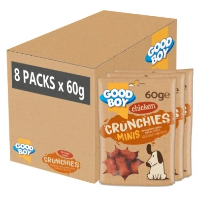 SERIOUS CRUNCH - Good Boy's Crunchies are a super fun treat, with a satisfying CRUNCH sound as your dog tucks in NATURAL GOODNESS - made with delicious natural ingredients and no artificial colours, flavours and preservatives OVER 30% CHICKEN BREAST - super tasty, super meaty flavour made with real chicken PERFECT FOR SMALLER MOUTHS - Crunchies Minis are the perfect mini bites for smaller pups