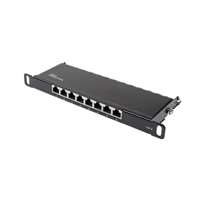 High-quality patch panel / patch panel / distribution panel - 10 inch / 10 inch design with 8 ports - open without tools Cat. 6 / Category 6 - Suitable for 1 GIGABIT/s Ethernet and for transmission frequencies up to 250 MHz Shielded (STP) + complete shielding of RJ45 sockets and LSA strips + central earth connection Cable installation via LSA strips (colour marking according to TIA 568 A/B) - for solid and stranded cables (22-26 AWG) Colour: Jet Black (RAL9005) / Dimensions (WxDxH): 254 x 100 x 22 mm