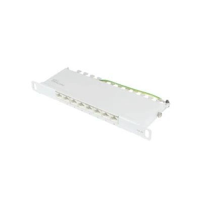 Good Connections® Patch Panel / 10" Server Mounting Rack Cat. 6A, 500 MHz 10 GIGABIT Compatible 8 Port 0.5U STP Shielded Tool Opening Light Grey (RAL7035)
