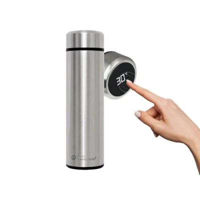 Smart insulated and thermos flask with touchscreen temperature display When pressed on the lid, the internal temperature of the vacuum jug is displayed No cumbersome opening and testing. This ensures better temperature retention and protection against scalding State of the art double wall vacuum technology blocks heat transfer International products have separate terms, are sold from abroad and may differ from local products, including fit, age ratings, and language of product, labeling or instructions.