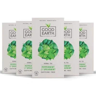 Good Earth Tea Co. Peppermint & Spearmint Bags Naturally Caffeine Free Detox with Bold Minty Flavour 5 x 15 Biodegradable Herbal