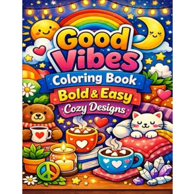 Good Vibes Coloring Book: Bold & Easy Cozy Designs: Relaxing Pages for Stress Relief and Mindfulness