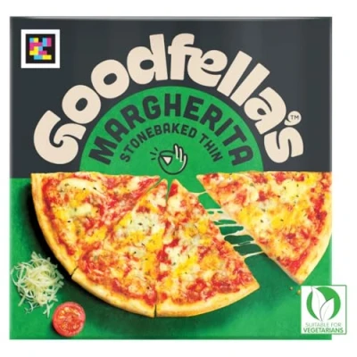 Goodfella's Margherita Stonebaked Thin Pizza 334g features a crispy stonebaked base topped with tomato purée, mozzarella, emmental, red cheddar, and classic Italian herbs. Perfect for sharing or solo, it offers authentic Italian flavour and convenience for any occasion. Contains gluten and milk.
