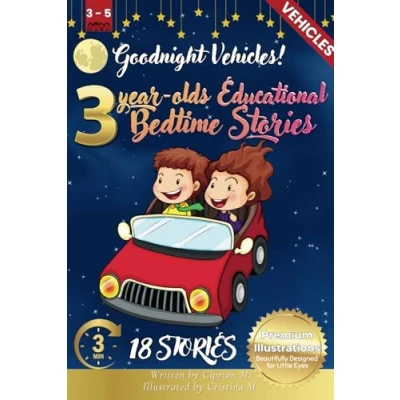 Goodnight Vehicles: 3 Year Old’s Educational Bedtime Stories with Premium Illustrations: A Fun Exploration of Cars, Trains, Boats, and More for ... Olds Color Pages)