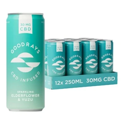 Goodrays 30mg CBD Drink 12 x 250ml Cans Elderflower & Yuzu Natural Flavours, Low Calorie, Vegan High Strength (30mg/can), All Reduce Stress Unwind