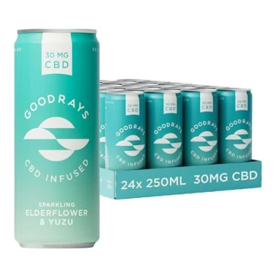 Goodrays 30mg CBD Drink 24 x 250ml Cans Elderflower & Yuzu Natural Flavours, Low Calorie, Vegan High Strength (30mg/can), All Reduce Stress Unwind