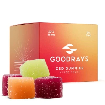 Goodrays CBD Gummies High Strength 30 x 25mg Mixed Fruits Edibles Reduce Stress, Calm Anxiety, Unwind, Improve Sleep