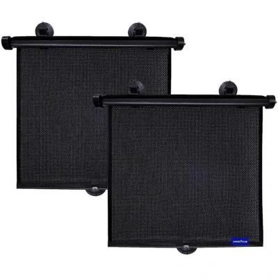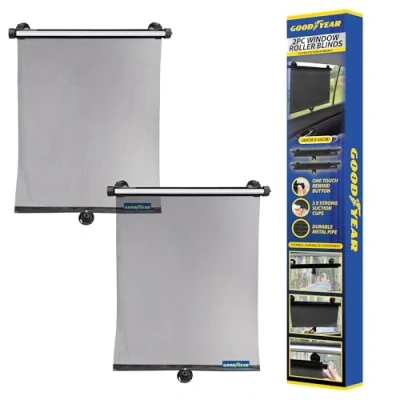 ManoManoGeneral description GOODYEAR Sun Roller Blinds are designed to provide effective sun protection for your car's windows. These flexible and durable blinds are convenient for use, especially for families with kids, ensuring a comfortable ride by blocking harmful UV rays. Installation Insert the suction cup into the hooks. Place the roller blind onto your car's window. Pull down the suction cup to your car's window. Adjust to your desired length. Press the one-tap button to rewind the roller blind.