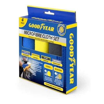 Advanced Microfiber Technology: These specially designed microfiber cloths are engineered to provide superior cleaning power. The statically charged cleaning fibers attract and hold dust, dirt, and debris more effectively than traditional cloths, ensuring a thorough and efficient clean for your vehicle. Versatile Cloth Set: This set includes four types of cloths tailored for specific cleaning tasks: a dashboard cloth for interior surfaces, a buffing cloth for polishing and shine, a window cloth for streak-free glass cleaning, and a wash & dry cloth for general use. Each cloth is designed to optimize cleaning results. Generous Size: Goodyear 4PC Microfibre Cloth Set measuring 40cm x 30cm, these cloths offer ample surface area for efficient cleaning. The size ensures that you can cover more area with each cloth, making your cleaning tasks quicker and more effective. Superior Dirt Absorption: Microfibers are known for their superior dirt absorption capabilities compared to regular cloths. These cloths can hold more dirt and grime, reducing the need for frequent cleaning and making them highly efficient for vehicle maintenance. Enjoy easy maintenance with these machine washable microfiber cloths. They retain their effectiveness and durability even after multiple washes, making them a practical and cost-effective choice for ongoing vehicle care. The high-quality fibers provide a streak-free, glossy finish, enhancing the appearance of both interior and exterior surfaces.