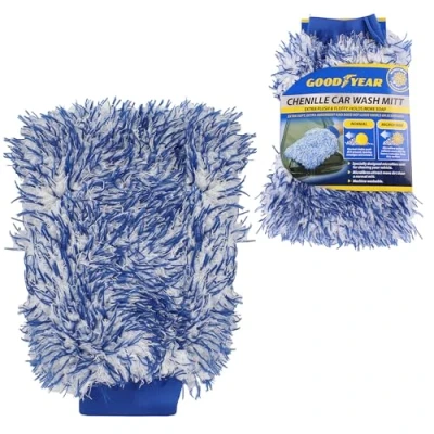 Premium Chenille Microfiber Material: The Goodyear Chenille Luxury Wash Glove is crafted from high-quality microfiber chenille, providing exceptional softness and absorbency. The plush, dense fibers effectively trap and lift dirt, grime, and contaminants from your vehicle's surface, ensuring a thorough and gentle clean without scratching or damaging your car’s paint. Superior Dirt Attraction: Unlike conventional wash mitts, this glove is engineered with advanced microfiber technology that attracts and holds more dirt and debris. This unique feature ensures that contaminants are lifted away from the surface and encapsulated within the fibers, reducing the risk of swirling and scratching during the wash process. Scratch-Free Cleaning: Designed with a focus on scratch-free performance, the Goodyear Chenille Luxury Wash Glove features ultra-soft fibers that glide smoothly over your vehicle’s surface. The gentle texture minimizes the risk of abrasions, making it safe for all paint finishes, including delicate and high-gloss coatings. Machine Washable for Easy Maintenance: The wash glove is fully machine washable, allowing for effortless cleaning and upkeep. Simply toss it in the washing machine after each use to remove dirt and residues, ensuring it remains fresh and ready for your next wash. This convenience saves time and extends the lifespan of the glove. Ergonomic Design for Comfortable Use: The glove is designed to fit comfortably in your hand, with an adjustable cuff that secures it in place. The ergonomic design provides a secure grip and ease of use, allowing you to maneuver the glove effortlessly over various surfaces, including wheels, glass, and paintwork.
