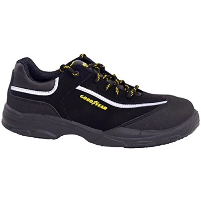 Shoes made of black nubuck leather. Rubberised toe cap for durability Dual density PU sole, anti-static and non-slip. Composite toe cap and insole with penetrating fabric. SRC: Non-slip on ceramic floors with LSS detergent (Lauril sulphate) and on steel floors with glycerine., Weight: 1.8959754532 Pounds, Manufacturer: Goodyear