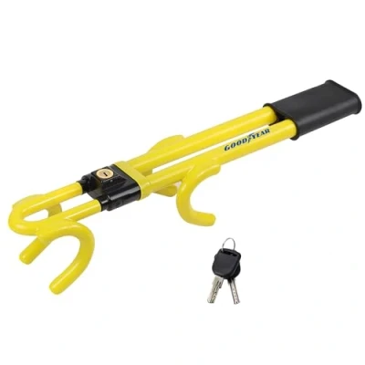Ultimate Vehicle Protection: Safeguard your car, SUV, or truck with the GOODYEAR Steering Wheel Lock. This high-security anti-theft device provides robust protection against theft, giving you peace of mind wherever you park. its best for car security devices. High-Security Locking Mechanism: Featuring a high-security locking mechanism made from durable alloy steel and brass, this steering wheel lock ensures maximum resistance against tampering and unauthorized access. This anti-theft device ensures maximum security for your vehicle, deterring even the most determined thieves. Adjustable Length for Custom Fit: Easily adjustable to fit different steering wheel sizes, the Goodyear Steering Wheel Lock ensures a snug and secure fit. This customizable feature enhances its usability across various vehicle types. Dual Style Design: The unique dual style design provides an additional layer of security by securing the steering wheel in two places. This double hook lock system enhances the lock's effectiveness, making it significantly harder to remove without the key, signaling that your vehicle is well-protected Trusted Brand: From the reputable GOODYEAR brand, known for its commitment to quality and reliability in automotive products. Invest in a steering wheel locks that combines security, durability, and ease of use, backed by a name you can trust.They are popular and recommended brand., Weight: 4.1446905256 pounds, Manufacturer: Avron Trading Ltd