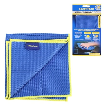 Goodyear microfibre Waffle cloth I Reduces drying time with less wring outs Ideal for bodywork & glass Designed Statically charged cleaning fibres Leaves lint free finish