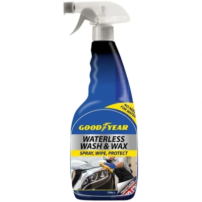 Goodyear Car Waterless Wash And Wax Cleaning Clearer Spray 750ml Just spray, wipe and job done! No water required No mess No powder residue Non abrasive Dirt lifting