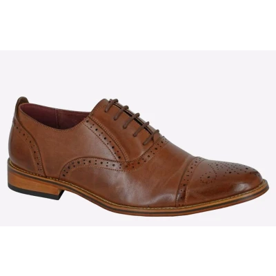 Goor ISAAC Mens PU Lace Up Oxford Brogue Shoes Brown UK 7