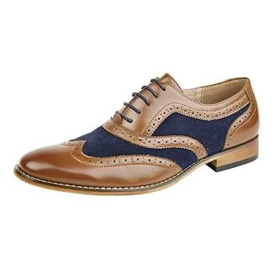 Goor Men's Tan/Navy, Leather Lined Lace Up Smart Brogues Shoes Size 8 UK