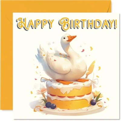 Goose Birthday Cards Animal Cake Happy Card for Son Daughter Brother Sister Grandson Granddaughter Niece Nephew Cousin, 145mm Bday Greeting
