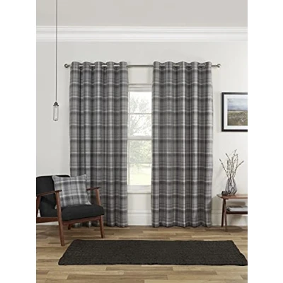 Gorden John Textiles Carnoustie Curtains Blackout Eyelet Woven Check Grey 90 x 54'