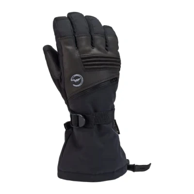 Shell is bluesign APPROVED; durable polyester shell Waterproof, windproof, breathable GORE-TEX insert is bluesign APPROVED; Megaloft synthetic insulation; moisture-wicking lining Water-resistant CLUTCH recycled synthetic leather trim; textured palm and fingers for enhanced grip Zippered handwarmer pocket; leash; nosewipe Gauntlet cuff with drawcord closure and wrist strap