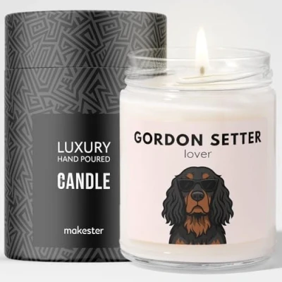 Gordon Setter Gifts Luxury Soy Wax Candle Vanilla, Jasmine, Sugared Almond Dogs in Shades Makester