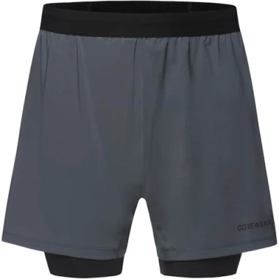 Lightweight and extremely comfortable men's running shorts with the superior comfort of running tights Comfortable fit: loose cut for maximum freedom of movement, reflective logo GORE Selected Fabrics: rapid moisture transport and extremely breathable Unrestricted freedom of movement: barely perceptible material with kinetic garment design orientated to body movements, reduced seams, pockets on the back waistband and right leg Scope of delivery: 1x GOREWEAR Concurve 5" 2in1 Shorts Mens, size: S, colour: graphite grey/black, 101018
