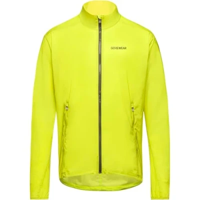 Lightweight and comfortable men's windbreaker with non-stick lining and the comfort of a shirt, ideal for runners as wind protection on cooler days Comfortable fit: Loose cut for maximum freedom of movement, reflective details on cuffs, elbows, shoulders, waist and centre back GORE Selected Fabrics fabrics: Rapid moisture transport and extremely breathable, produced with recycled material Low air permeability: Protection against light rain and splashing water, Long-lasting comfort in changing conditions, Softly lined collar, 2 front pockets with zip, Can be stowed in one of the front pockets Scope of delivery: 1x GOREWEAR Concurve Windbreaker Mens, size: S, colour: lime green, 101136