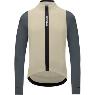 AmazonWarm, long-sleeved and versatile men's jersey for cyclists, Ideal for protection and comfort in the cool, transitional season Close fit: For optimal performance, cycle-specific cut GORE Selected Fabrics: Rapid moisture transport and extremely breathable, Produced from mainly recycled material Highly elasticated and breathable: soft fleece on the back and sleeves for better heat distribution and protection against overheating, 360° visibility, Triple back pocket, Silicone gripper Contents: 1x GOREWEAR SPINSHIFT Thermo Long Sleeve Jersey Men, Size: M, Color: Beige / Graphite Gray, 101086