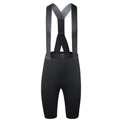 Water-repellent - Women's bib shorts with seat pad for cyclists, ideal for the transitional season to protect against wind and light rain on the road bike, Gravel bike, MTB etc. Close fit - For optimum performance, Bike-specific cut, Reflective details GORE Selected Fabrics - Rapid moisture wicking and extremely breathable, Production with recycled material Practical features - Weather protection inserts, Adjustable strap construction for a secure hold of the seat pad, Flat seams Contents - 1x GORE WEAR Transition Bib Shorts+ Women's, Size - 38, Colour - Black/Fire Red, 100926