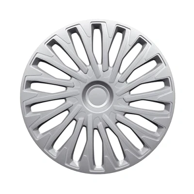 16" silver plastic wheel trim suitable for steel rims. Made from durable and impact-resistant ABS plastic. Always fits perfectly on the rim thanks to the original fit and adjustable clamping ring. Easy to clean with stain resistant coating. The wheel trims come in a display of 20.