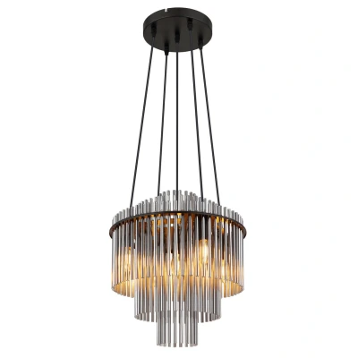 Gorley Pendant Ceiling Light Matt Black Smoke Glass Shade 5x E14