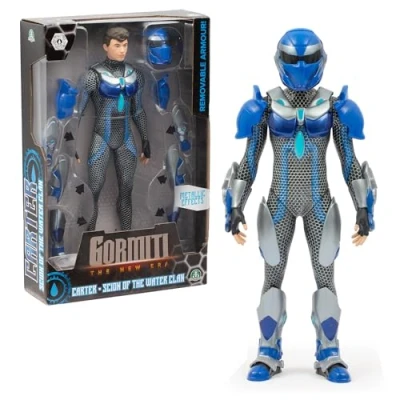 GORMITI the NEW ERA, Carter, Scion of Water Clan, With Removable Armour, 27 cm Articulated Action Figure, Helmet and Silver Effect Armor, for Children from 4 Years Old