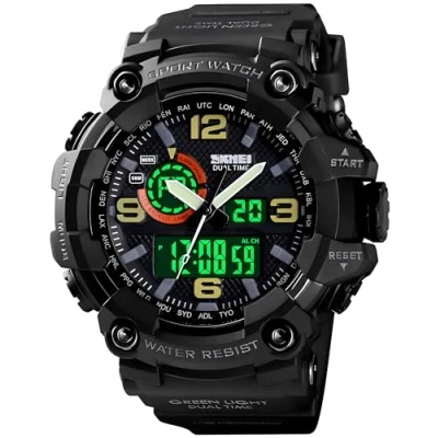 Imported Military Watches: This is a watch that supports both digital and analog displays. It provides two different time zones for simultaneous setup and reading, with high quality sports and Japanese batteries, waterproof performance, stylish personality, military style, stylish sports dial design, large Dial is easy to read. Multi-function sports watch: with stopwatch, dual-time display, independent alarm, 12/24H time, calendar, LED backlight, waterproof, shockproof and other functions. These features make it the perfect choice for all kinds of outdoor sports and everyday use. High-quality materials: The soft PU rubber band makes it comfortable to wear, and the durable plastic casing and mineral glass mirrors are extremely resistant to pressure and can be used in any environment. 164 ft / 50M waterproof: wash your hands, bathe, sweat, swim, wash and rain without problems. But don't dive underwater or press any button.